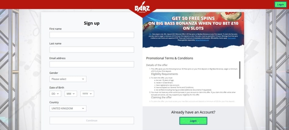 How to Sign Up at Barz Casino