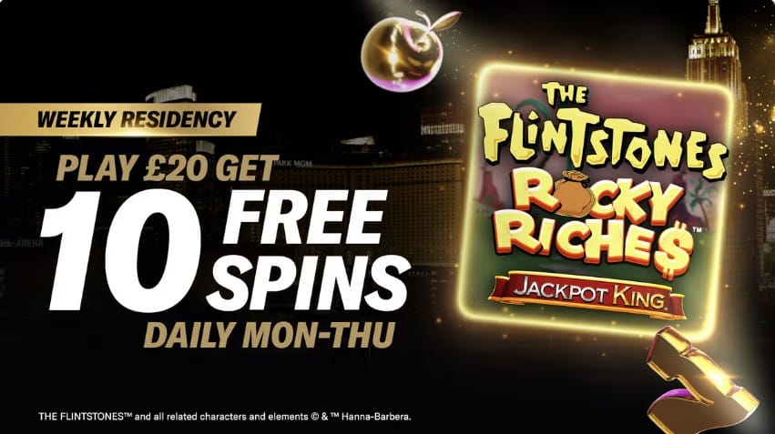 Step into Bedrock for a playful midweek treat as BetMGM rolls out its Weekly Residency promotion, giving you the chance to collect free spins day after day. It is a light, fun way to keep your reels spinning while exploring a classic slot, with rewards building up as the week goes on if you keep coming back for more prehistoric action! π¦