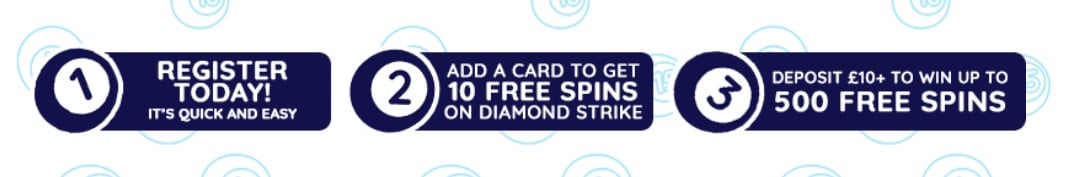 - Receive 10 Free Spins on Diamond Strike.