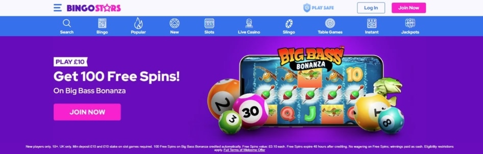 Once you register for a Bingo Stars account and deposit Β£10, the 100 free spins will automatically be added to your wallet. Remember, if you deposit using an eWallet, you won’t qualify for the bonus.