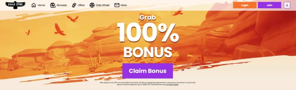 Eagle Spins Bonus Offers β 100% Welcome Bonus up to Β£200