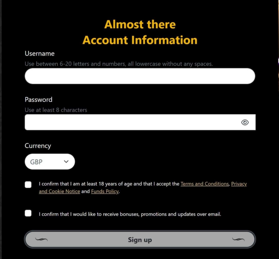 Moving on, you’ll need to pass a quick KYC check and verify your details to join with a new account. That means you’ll need to verify your age (only players who are 18 or over can legally join), confirm your UK citizenship via the phone number and address, and read the site’s T&Cs.