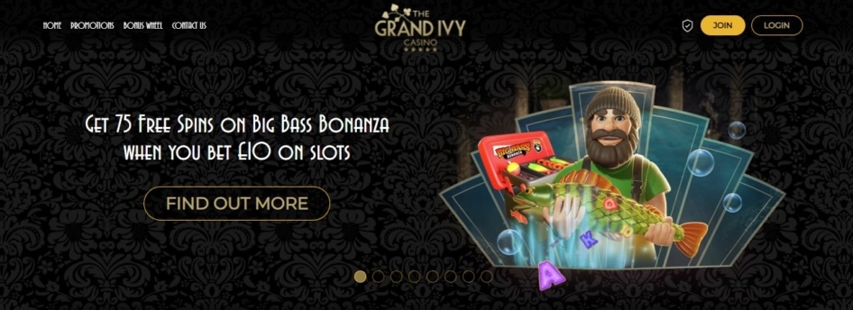 The sign-up bonus at The Grand Ivy Casino brings you 75 bonus spins on the popular Big Bass Bonanzaslot. While the x10 wagering requirements are pretty fair and decent for the casino, the winings of these bonus spins are wager-freewe can’t escape the thought that this bonus isn’t exactly the biggest one in the UK.