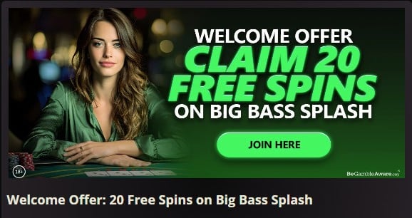 18+. New players only. Min deposit and wager Β£20 on Big Bass Splash. 20 free spins (Β£0.10 per spin) on Big Bass Splash with no wagering on winnings. Must be claimed within 7 days. Full T&Cβs apply.