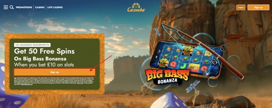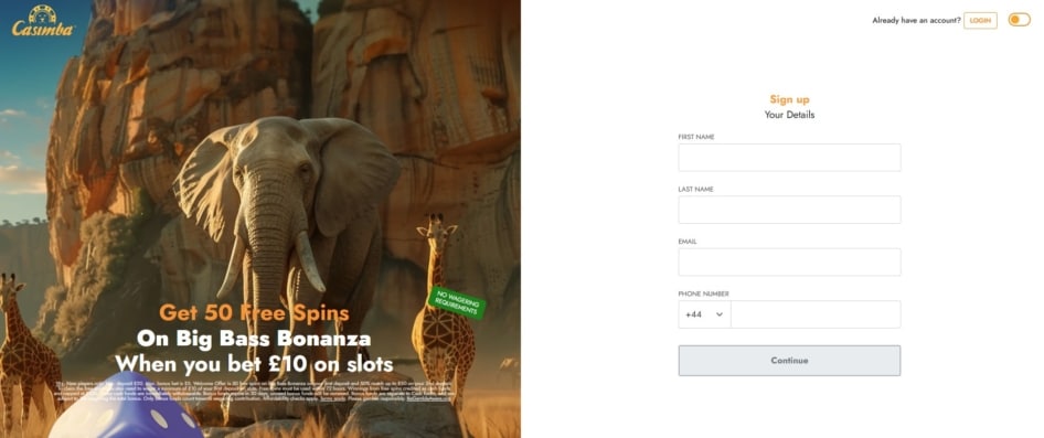 What’s more, it offers a stunning sign-up deal β a batch of 50 FS on the first deposit, a 50% boost on the second deposit, and a batch of 50 FS on the famous Big Bass Bonanza. All that stands in your way of claiming these offers and enjoying immersive casino action at Casimba Casino is a simple registration form. You can join the site in a matter of minutes, and we’ll show you the way through detailed step-by-step instructions in this guide.