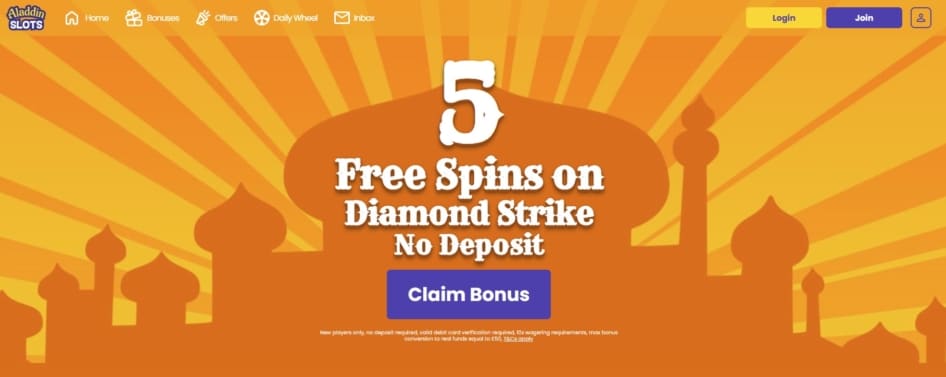When you join Aladdin Casino, you’ll receive 5 no deposit bonus spins to play on Diamond Strike. To claim, all you have to do is set up your account and then enter your debit card details. You’ll immediately be able to play Diamond Strike, and you can also unlock a chance to win up to 500 bonus spins on Chilli Heat when you make your first deposit of Β£10.