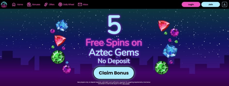 Signing up to No Deposit Slots Casino gives you 5 no deposit free spins on registration. All you have to do is create your account and enter your debit card details. This will unlock 5 bonus spins on Aztec Gems, with no payment required. You can also claim a free spin of the Mega Reel Wheel when you make a deposit of Β£20 or more, which offers the chance to win up to 500 bonus spins on Big Bass Splash.