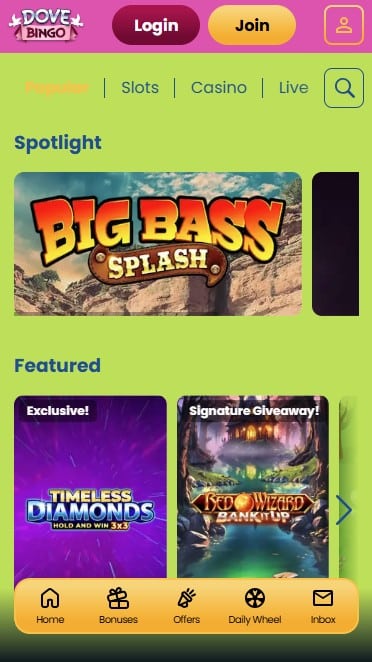 Alright, let’s talk aesthetics and usability – because a great mobile site isn’t just about being accessible; it’s about being a joy to use. And we’re pleased to report that Dove Bingo’s mobile interface truly shines.