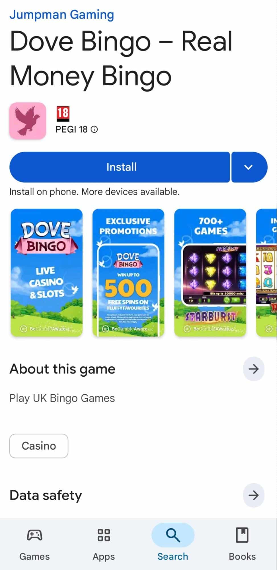 Install & Download: Choose the Dove Bingo App and then press Install.