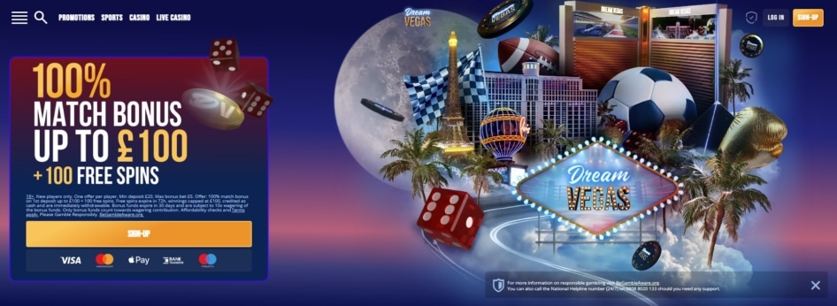 As a site managed by a reputable White Hat Limited brand in the UK, Dream Vegas has been offering exceptional gaming options to British players since 2018. It offers an immersive collection of slots from more than 90 different providers, a complete live dealer lobby, and some new and exciting game types like Crash and Dice. As a UKGC-licenced casino, it’s part of the GamStop program for self-exclusion and responsible gambling, and it works closely with GamCare and BeGambleAware to educate players on responsible gambling tools. It’s possible to use GBP as a currency and use transfers from British banks, as well as credit cards and e-wallets for payments. Besides having over 2,600 games, the site also features superb bonuses and promos, such as the 100% welcome offer, bonus spins, jackpots, and daily Bonus Wheel spins.