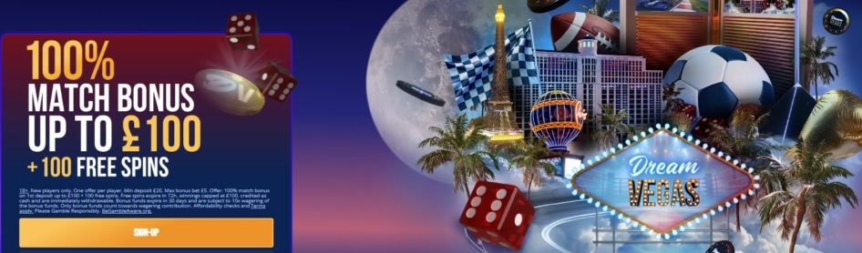 Of course, DreamVegas Casino provides a sign-up bonus for all new players who register with new accounts. That means you’ll get to claim anywhere between Β£20 and Β£300 via a matched deposit boost, as well as between 50 and 150 FS.