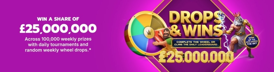 Drops & Wins 2026 at Fruit Kings Casino gives you a full year of Daily Tournaments and Weekly Wheel Drops, with a huge shared prize pool across the network. Log in or sign up, check the eligible games, play responsibly and do not forget to browse other casino bonuses and welcome offers on Bonus-menu.co.uk π°