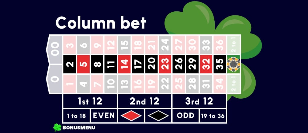 With this bet, you are betting directly on one specific column on the screen. A win pays 2 to 1.