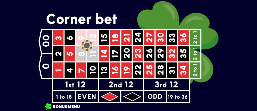 The bet is placed at the intersection of these four numbers. A win pays 8 to 1.
