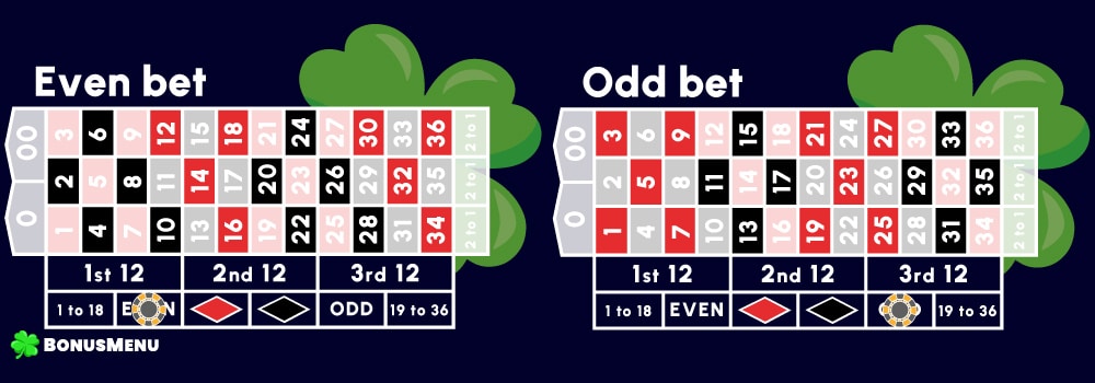 With outside bets, you will also often come across the term “straight bets”. This means that you are betting on opportunities with an even payout ratio (1 to 1). These bets are generally the most popular in roulette because there is an equal chance of winning and losing.