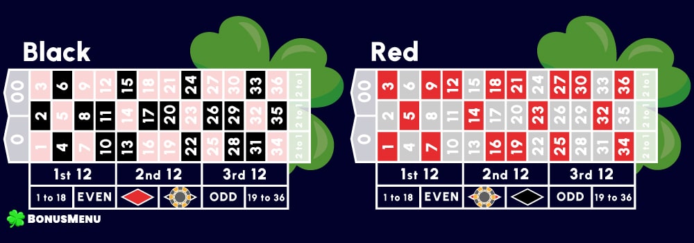 First of all, it is essential to familiarize yourself with the basic layout of a roulette wheel. Even if you’ve never played roulette, you’ll know that it contains boxes with identical red and black numbers 1 to 36 and 1 green box with a zero (for European and French roulette) or two zeros (for American roulette). The colour distribution of the numbers and the wheel is as follows: