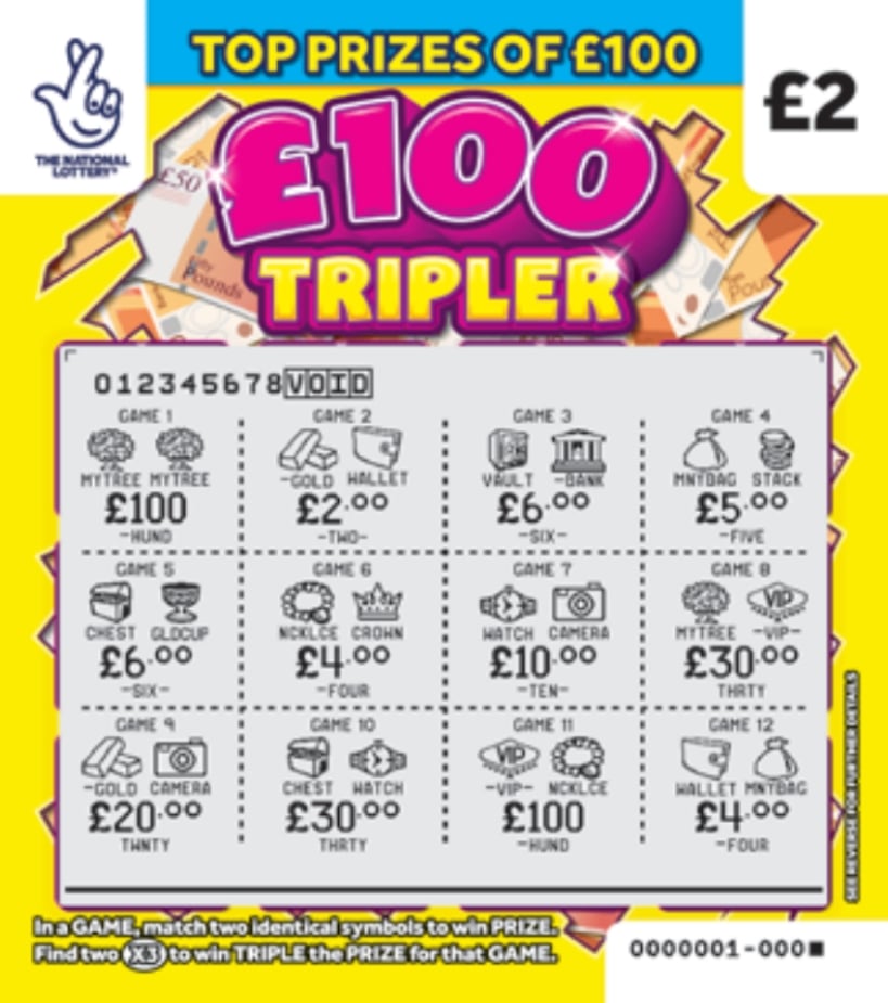 Try your luck with the £100 Tripler, the fast-paced £2 scratchcard that gives you 12 chances to win on every play. Match two symbols to snag a prize — and if you uncover two X3 icons, you could triple your winnings instantly. More