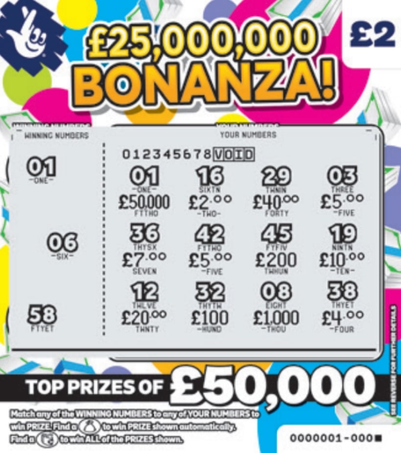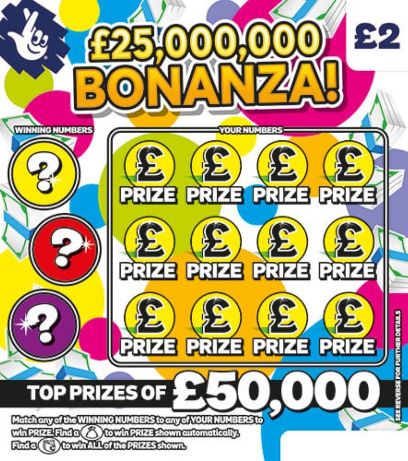 Match your numbers to the winning ones for a chance to scoop up to £50,000 – or uncover a wallet and win every prize shown in one go. For just £2, £25,000,000 Bonanza! from The National Lottery packs instant wins and big-money thrills into every scratch. More
