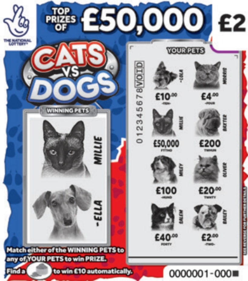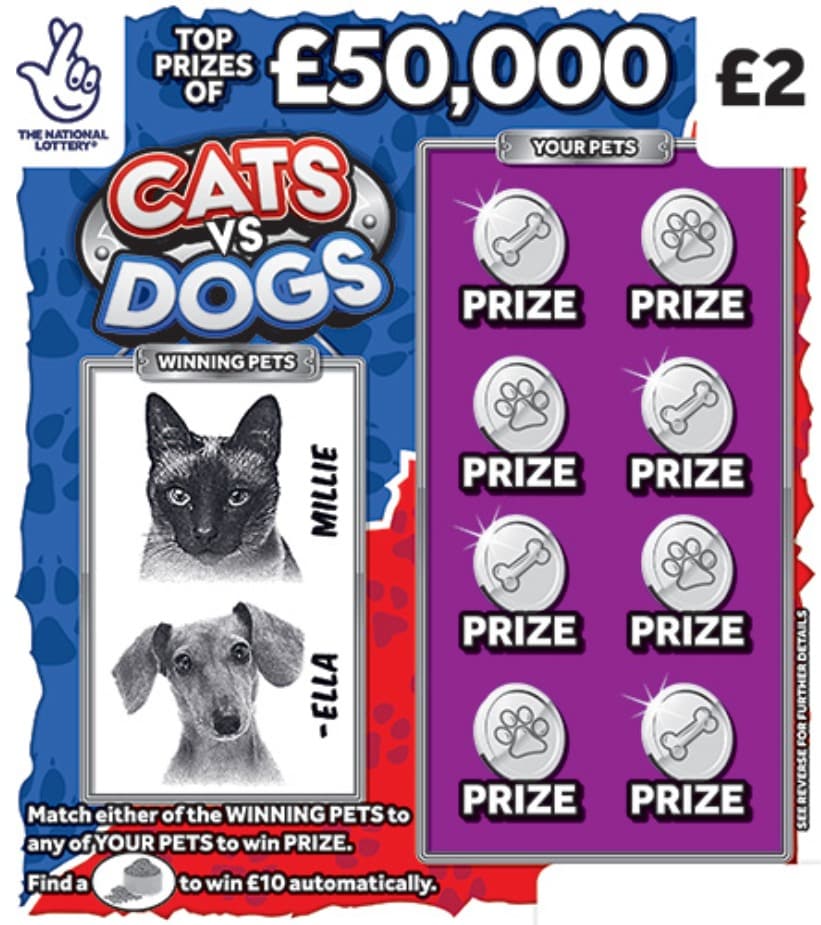 Cats VS Dogs is a fun and lively scratchcard where adorable pets face off, giving you the chance to win up to Β£50,000! With colourful, charming illustrations and playful competition, every scratch is full of excitement. More
