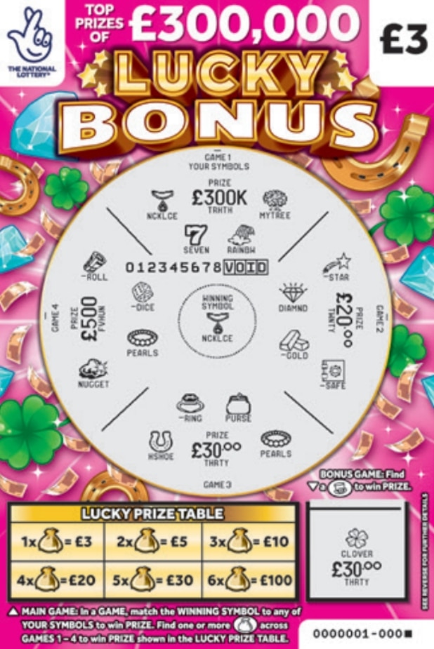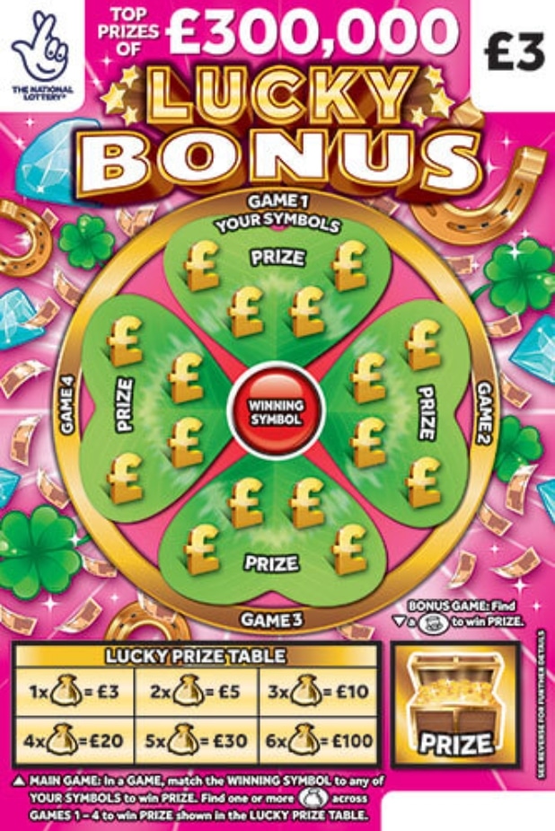 Try your luck with the Lucky Bonus scratchcard from The National Lottery β just Β£3 for the chance to win up to Β£300,000! With exciting bonus section, every scratch is packed with extra thrill. More