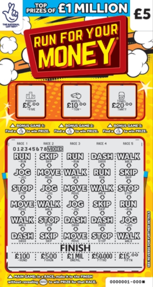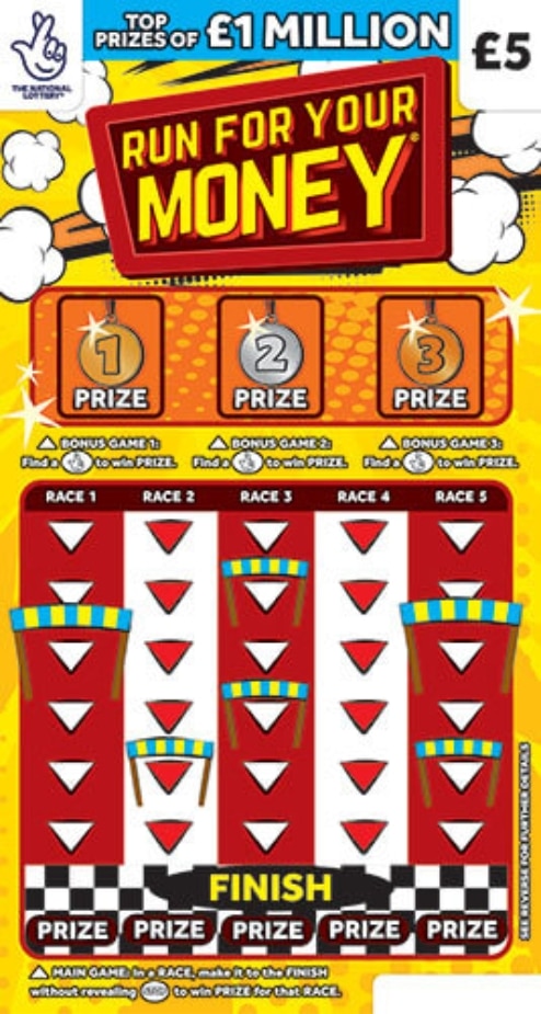 Race your way to riches with the Run For Your Money scratchcard β just Β£5 for the chance to win up to Β£1,000,000! With five thrilling races to play, every scratch takes you closer to the finish line and a life-changing prize. More