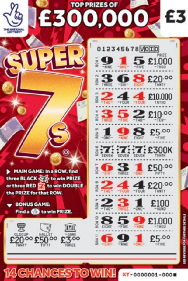 Feel the excitement with the Super 7s scratchcard β just Β£3 for the chance to win up to Β£300,000! With the power of lucky sevens and even the chance to double your prize, every scratch is packed with winning potential. More