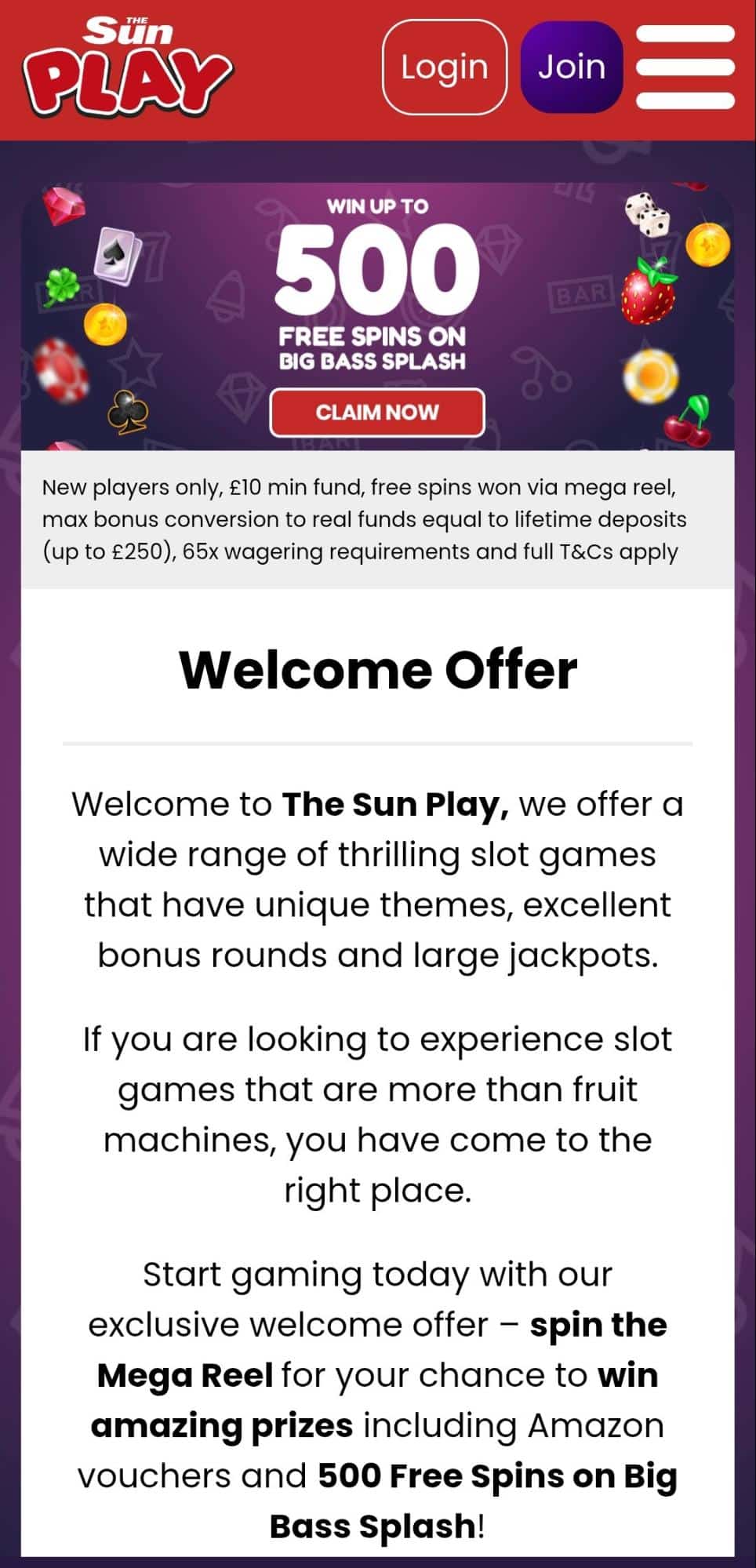 Sun Play Casino is an online slot focused gaming platform that offers players a colourful collection of popular slot titles, entertaining bonus features and regular promotional rewards. The casino places a strong emphasis on simple gameplay and fun mechanics, including its well known Mega Reel, where players can reveal mystery prizes and free spins. With well known slot games such as Starburst, Gonzoβs Quest and Fluffy Too, Sun Play provides a straightforward environment for players who enjoy spinning the reels and exploring different slot themes.