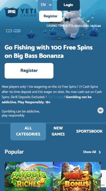 Enjoy Yeti Casino on the Go Without an App! While Yeti Casino doesn’t offer a dedicated mobile app, its mobile-optimized website delivers a seamless gaming experience. With 2,500+ games, a 100% deposit bonus up to £111, and 100 free spins, you won’t miss a thing! Access all features directly from your browser on Android or iOS. Let Bonusmenu.co.uk guide you to unlock all the mobile perks Yeti Casino has in store!